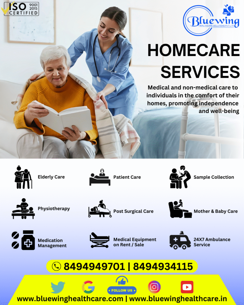 At Bluewing Healthcare Soultions Pvt Ltd, we have a highly trained and professional team of doctors, nurses, attendants and physiotherapists, we offer broad spectrum of services from elderly care to post-operative care at their homes. We also offer our trained personal expertise to corporates and industry for managing their employees’ health.